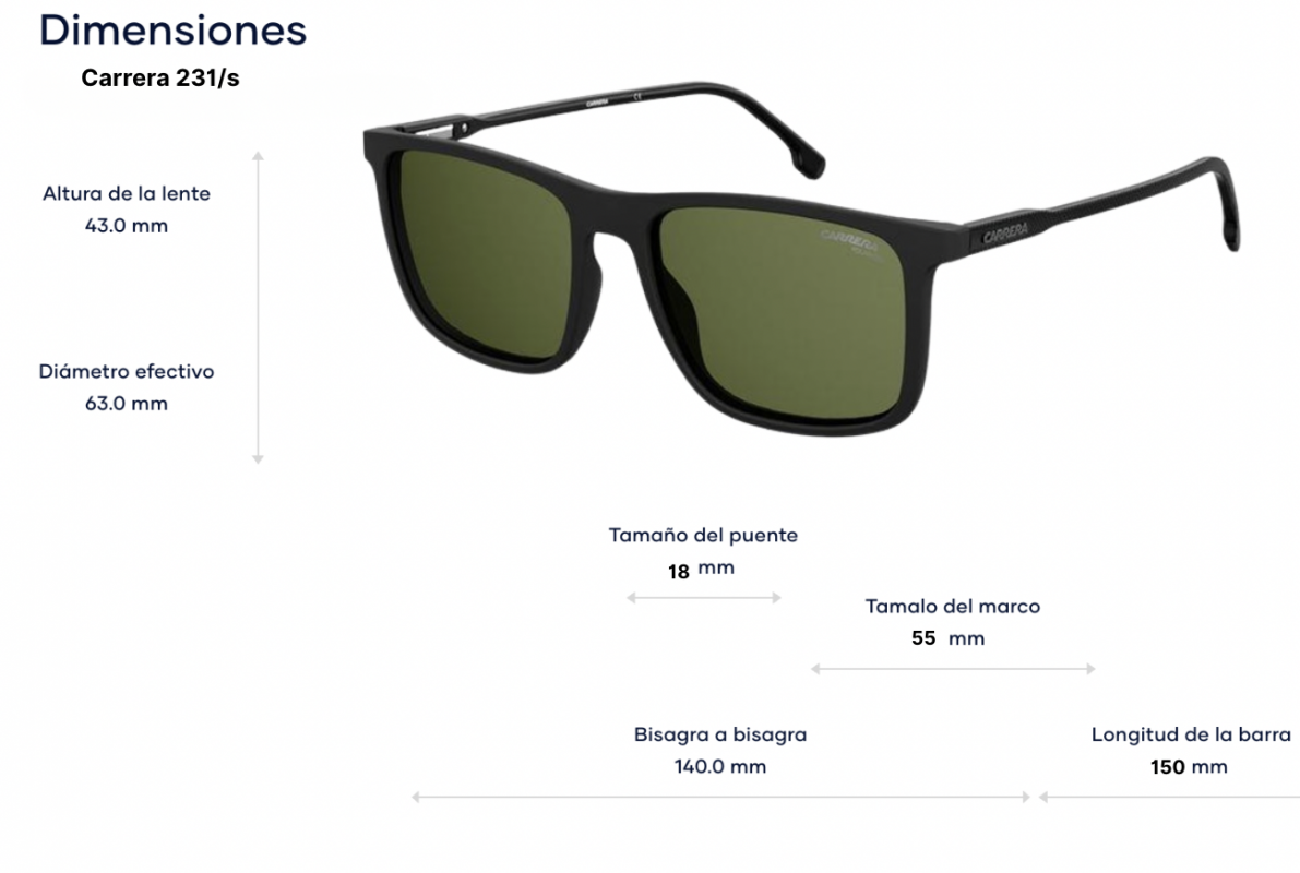 - Diseño Ícono de Carrera: Con un estilo moderno y detalles atrevidos, las gafas Carrera son reconocidas por su forma distintiva y acabados premium.